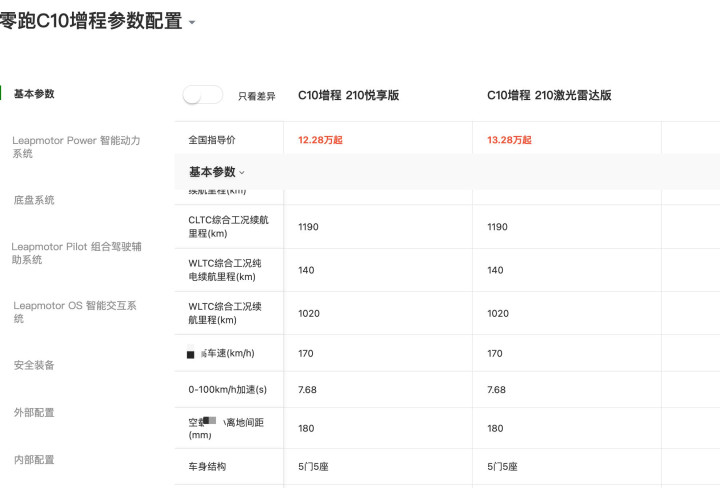 更重要的是,C10 的配置真的很值。相比同价位竞品,零跑 C10 在 800V 高压平台和激光雷达配置上更具差异化,比亚迪宋 PLUS DM-i、深蓝 S07、长安启源 Q07 很难在同价位提供这样的组合。
