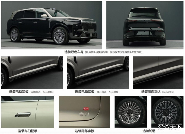 来到岚图9L侧面,大饼轮毂也没有缺席,并提供21英寸和22英寸两种规格。当然,要想豪气感更足,双色车身这一选项怎么可能会没有,搭配内置繁星点点般的半隐藏式门把手以及可升降电动脚踏板,给足了价值情绪。车尾以宽体造型为主,搭配嵌有品牌英文标识的贯穿式尾灯和隐藏式排气布局。
